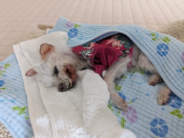 傷口の膿の減少と夜中に痙攣を起こすことがなくなり少しだけど元気を取り戻しているように見えました。